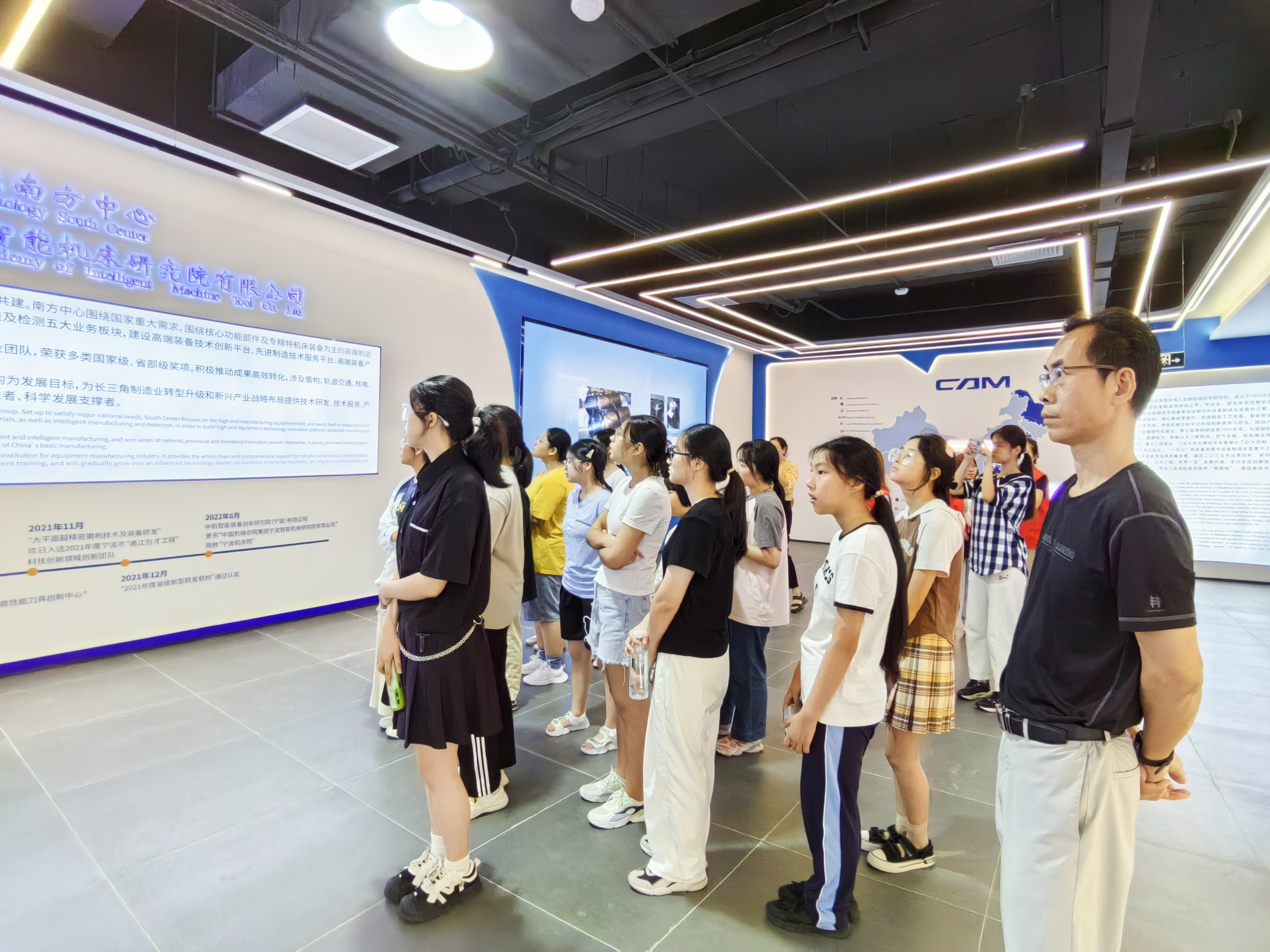 這次活動,通過“動靜結(jié)合、交流互動”等方式展開,在參觀公司展廳,讓學(xué)習(xí)了解寧波機床院的發(fā)展、建設(shè)歷程、成果成就,了解作為國資央企服務(wù)國家發(fā)展大局的使命擔(dān)當(dāng);在參觀實驗室,多角度、全方位了解科研創(chuàng)新、新先技術(shù)發(fā)展等。在交流環(huán)節(jié),2位外國專家和1位博士分享了如何成長成才的經(jīng)驗,鼓勵學(xué)生提升自信、開闊眼界,努力學(xué)習(xí);分享后,學(xué)生與專家、博士進(jìn)行了互動交流。